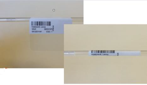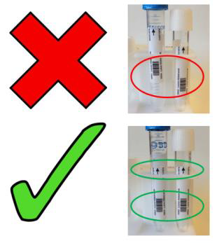 • Apply the labels ensuring the barcode and patient details are visible and straight.