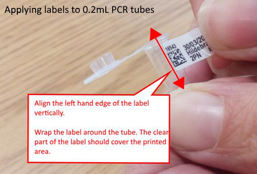 PCR tubes can be applied to both 0.2mL and 0.5mL PCR tubes, although the method of application differs slightly for each to ensure adequate lamination to the printed text and barcode.