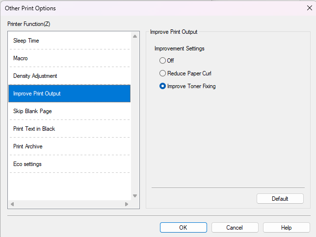 Select the Advanced tab and click on Other Print Options to adjust the settings in the screenshots below;